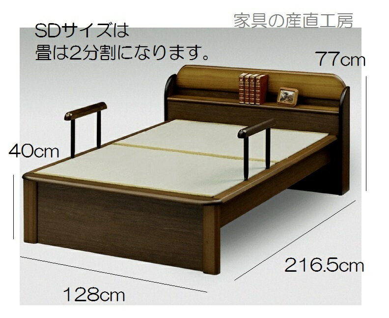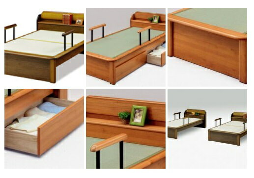 <シリーズ紹介> シングル宮付手すり2本付畳ベッド セミダブル宮付手すり2本付畳ベッド さらに、手すり追加の時 介護バー付手すりを追加するとき 引出し2個 追加するとき