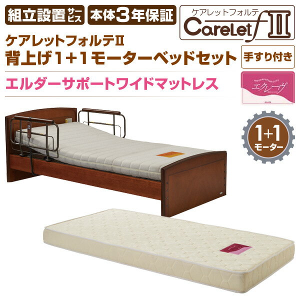Platz/プラッツ ケアレットフォルテ 背上げ1+1モーターベッドセット (エルダーサポートワイドマットレス) 手すり付き P201-5KBA-ES-S 本体サイズ 幅105×奥行203.5×高さ74cm 重量92.8kg 材質 ベースフレーム部:スチール、木部:中密度繊維板/天然木突き板/ポリウレタン樹脂塗装、マットレス貼り地:ポリエステル、マットレス中材:低反発ウレタン/ウレタン、サイドレール:スチール/天然木/ポリウレタン樹脂塗装 仕様 ●原産国:本体:中国、木部:ベトナム、マットレス:ベトナム 商品説明 ●プラッツの自立支援電動ベッド、マットレス&サイドレール(手すり)セット販売●ボード表面は天然木の突き板「矢貼り」仕上げ●ベッド上での姿勢を楽にする「電動ヘッドレスト」機能を搭載。