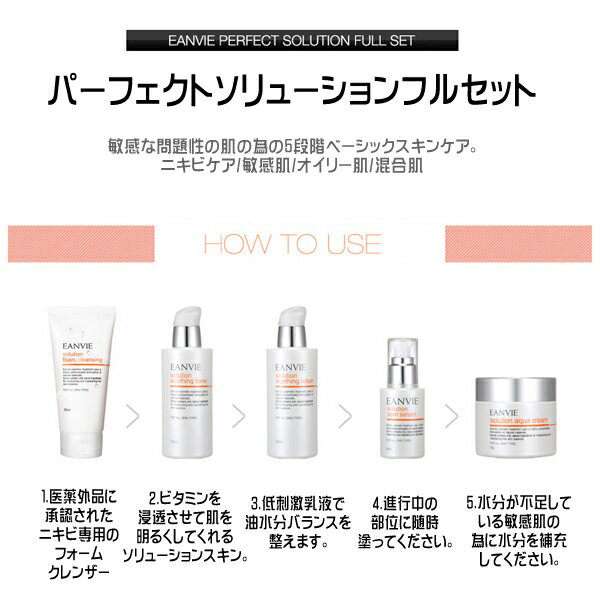 【商品名】 パーフェクトソリューションフルセット perfect solution full set 【セット内容】 化粧水 乳液 フォームクレンジング スポットセラム クリーム 【商品説明】 敏感な問題性の肌の為の5段階ベーシックスキンケア。