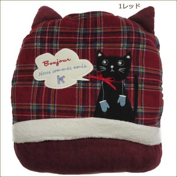 ★1 足ぬくぬくクッション カイロポケット付き 1レッド 2ネイビー 18-3209 Kusuguru クスグル レディース 女性 中高生 あったか ネコ クマ クッション